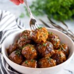 Sprinkle some toasted sesame seeds and finely sliced green onions over the meatballs to add a lovely nutty crunch and a burst of fresh color, turning your dish into an even more enticing presentation.