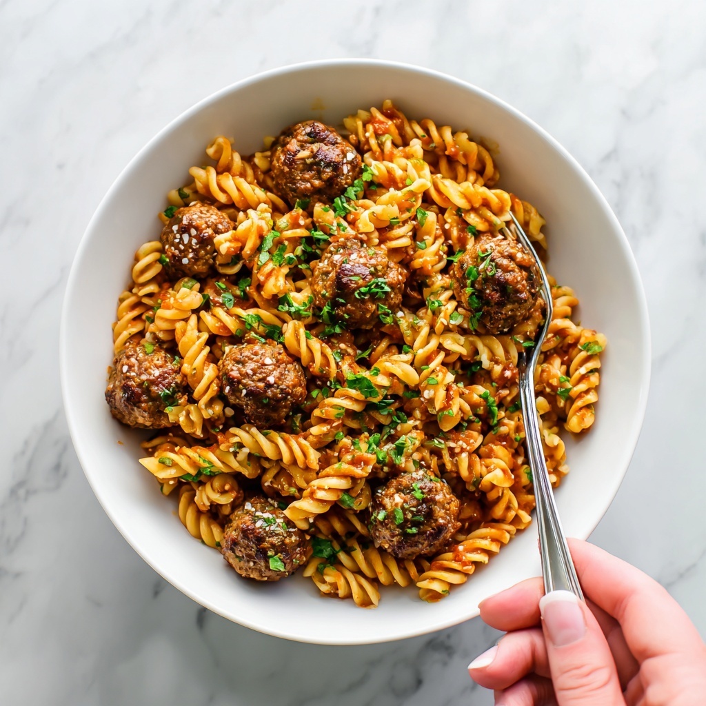 For a fun twist, serve the pasta in individual cinnamon or bread bowls for a cozy, rustic feel that’s sure to impress. Alternatively, layering the pasta and meatballs in a deep casserole dish, topping with extra cheese, and broiling briefly creates a bubbly, golden crust that makes the dish perfect for family-style dinners.