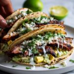 • Toppings: Diced white onion, chopped fresh cilantro, lime wedges, and optional sliced radishes add crunch, freshness, and zing.