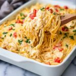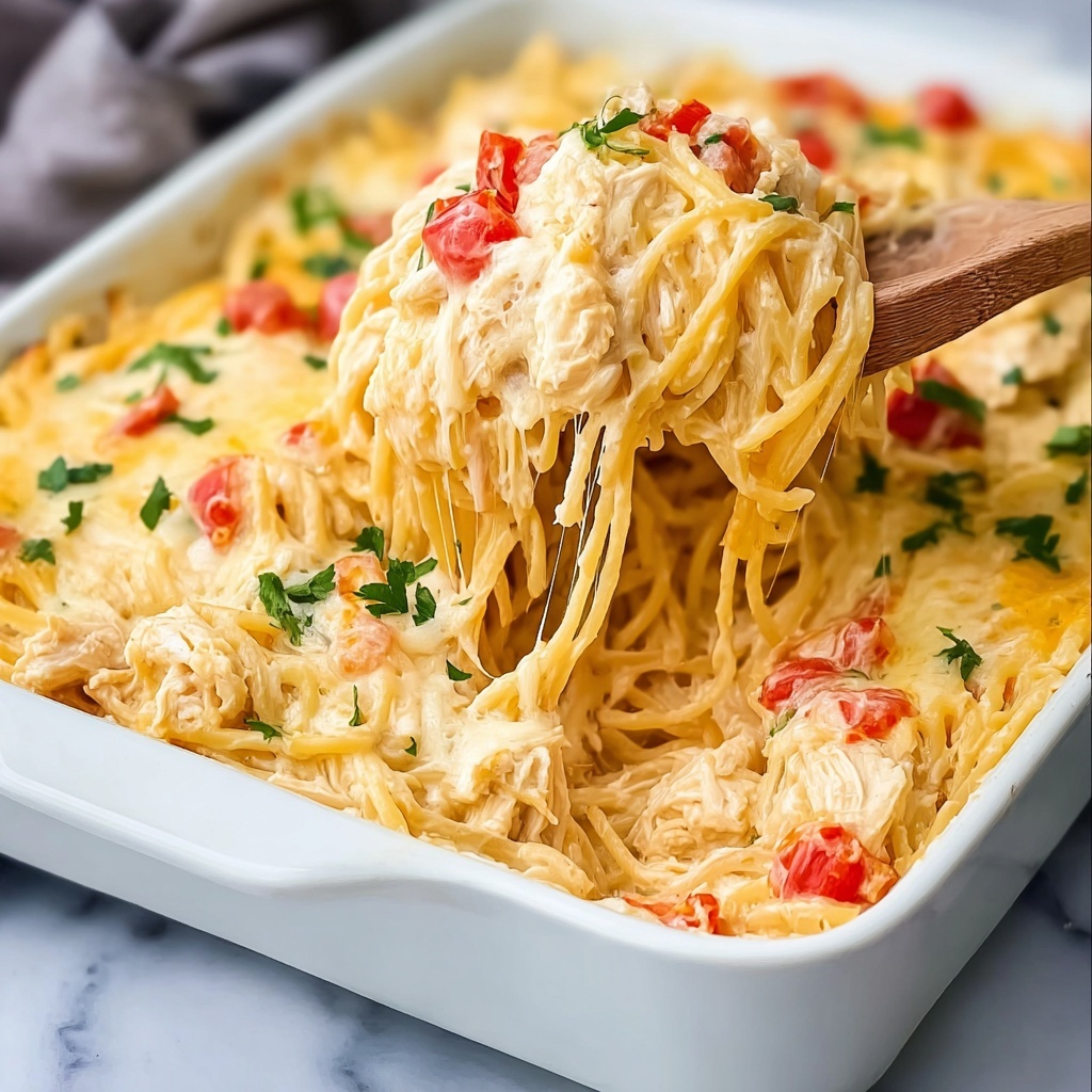This comforting Chicken Spaghetti casserole combines tender angel hair pasta with cooked chicken, creamy soup, salsa, and a Mexican cheese blend, all baked to bubbly perfection. It’s an easy, flavorful dinner perfect for busy weeknights or family gatherings.