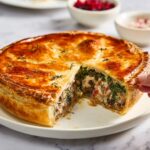 Pour your rich, meaty filling into the prepared pie crust and smooth the surface with a spatula. Place the pie in the preheated oven and bake for 35 to 40 minutes. You’ll know it’s done when the center is set and the top develops a gorgeous golden-brown color. Allow the pie to rest for about 10 minutes before slicing—this little wait helps the filling settle, making cleaner slices and an overall better eating experience.