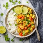 This vibrant Tofu Green Curry recipe features tender tofu cubes simmered in a fragrant and spicy green curry sauce loaded with fresh vegetables like carrots, cauliflower, and yellow squash. Made with coconut milk, lemongrass paste, and green curry paste, this dish offers a harmonious blend of creamy, tangy, and savory flavors. Perfect for a wholesome vegan meal that’s both nutritious and comforting.