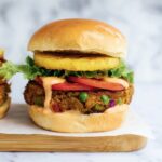 Definitely! Try swapping the beef for a hearty veggie or black bean patty, and keep all the toppings and grilled pineapple the same for a delicious plant-based twist.