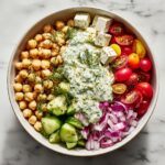 This refreshing Tzatziki Chickpea Salad combines protein-packed chickpeas with crisp cucumbers, juicy cherry tomatoes, tangy feta, and a creamy homemade tzatziki dressing. It’s a vibrant, Mediterranean-inspired dish perfect for a light lunch, a flavorful side, or a satisfying filling for pita bread. Fresh herbs like dill and parsley elevate the flavors, making it a healthy and delicious option for any season.