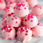 These Valentine’s Oreo Truffles are a delightful and festive treat made with golden Oreo cookies, cream cheese, and a sweet vanilla candy coating. Perfectly pink and topped with colorful Valentine sprinkles, these no-bake truffles are quick to prepare and ideal for sharing at parties or gifting to loved ones.