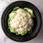 - Prepare the cauliflower: Remove large outer leaves from the cauliflower. Trim the stem just enough so the head sits flat in the slow cooker, ensuring stable placement.